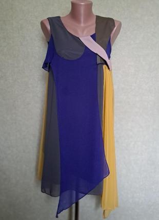Нарядое французское шифоновое платье на атласной подкладке. С левой стороны и спереди красиво спадают фалды. Одевалось один раз на юбилей. Все замеры на фото.