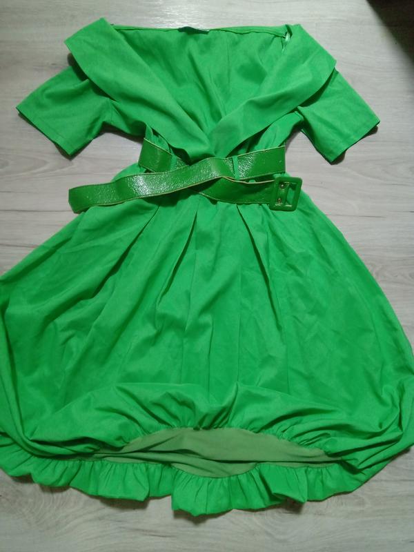 очень красивое и нарядное платье. яркое зеленое. длина 82 см. в поясе резинка 30 см. смотреться шнши моi обьвы.