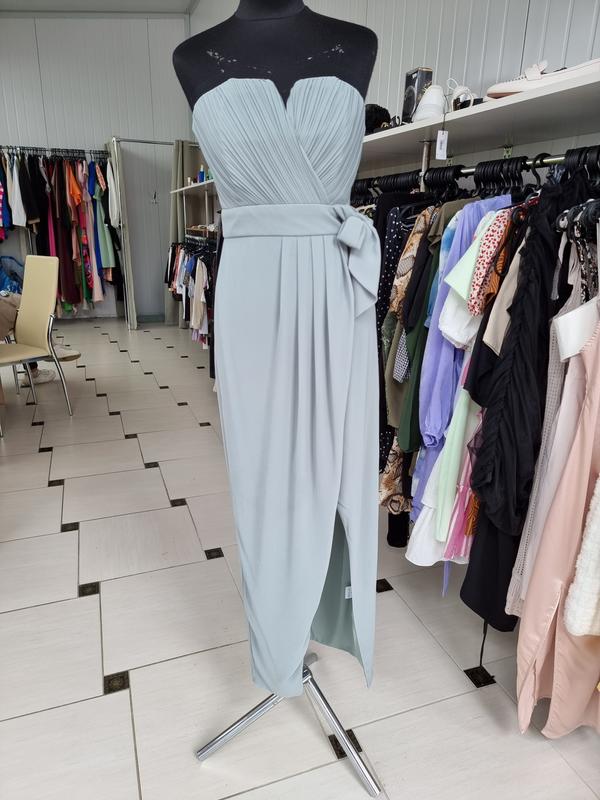 вечернее платье в сером цвете спереди разрез на одну ножку, корсет фиксируется на силиконовых полосках