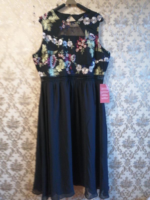 Очень красивое платье, красивая яркая вышивка, сзади спинка открытая, молния. Длина 119, пог 54, пот 47