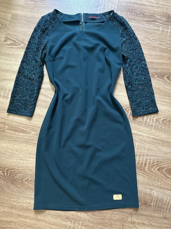 Платье в изумрудном цвете, отлично садится по фигуре, размер С, б/у красивого стана.