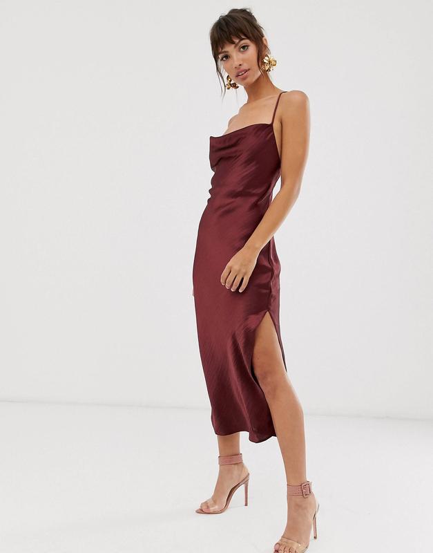 Атласное платье-комбинация меди со шнуровкой на спине asos design Uk 4