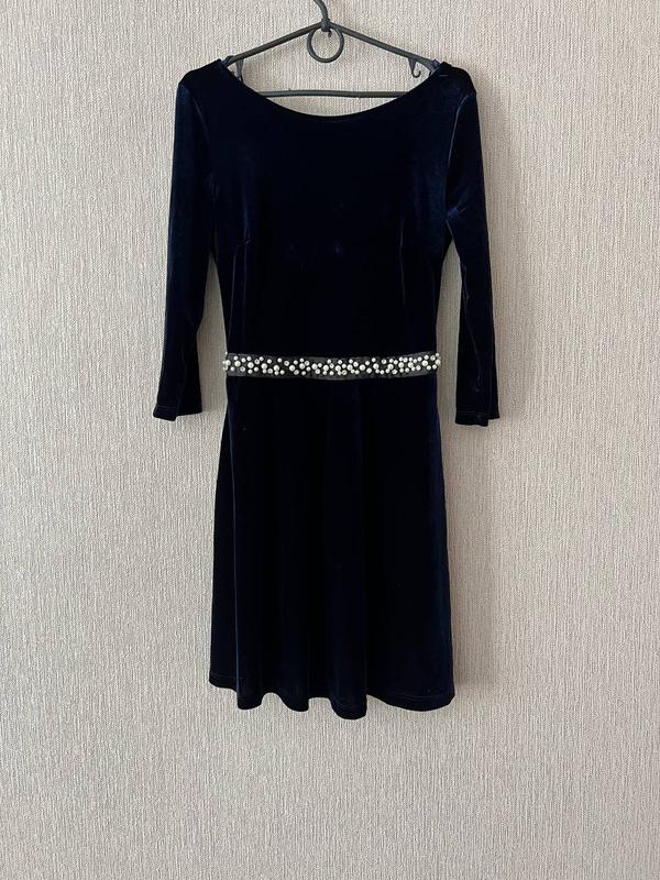 Платье темно-синего цвета,размер S, велюр, в красивом состоянии, одетое пару раз, очень красивое