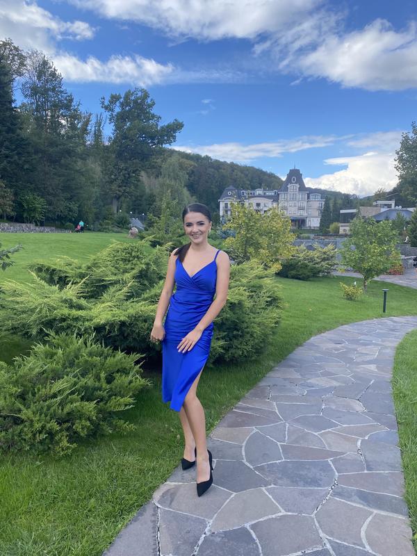 Красивое платье по фигуре, одевала 1 раз Невероятный синий цвет На ножке разрез Состояние новой Размер хс-с За дополнительными фото воспользуйтесь