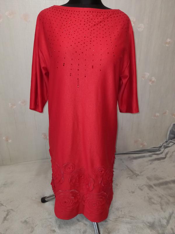 Платье праздничное.Гарного красного цвета с камушками сваровски, и внизу с цветами.Стан новой одета 1 раз.Пошив прямого кроя с открытой спинкой.Замеры скина при необходимости.