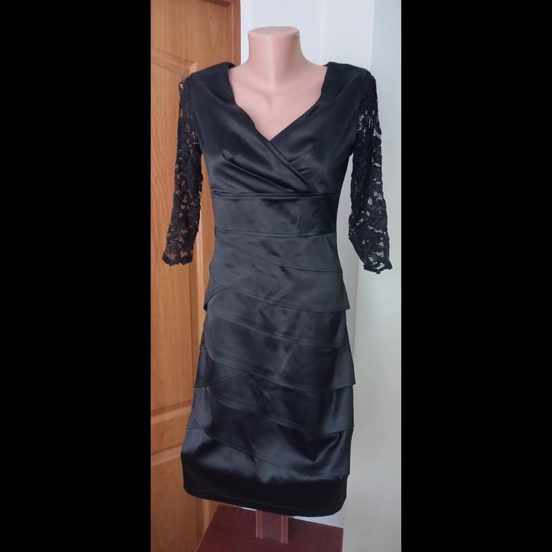 Элегантное черное платье-футляр из атласа 44-46 разм, глубокое декольте, по фигуре сидит просто шикарно! Рукав из стрейчевого гипюра,3/4. Без дефектов, в идеальном состоянии. Заміри є на фото. Пересылаю безопасной оплатой через укр и нп. смотри все мое объемы!)