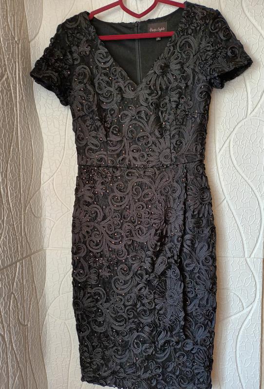 Красиве чорне плаття з текстурною тканиною. Стан чудовий. Склад поліестер. Підкладкова тканина ціла, склад поліестер. Заміри - плече 7 см, - рукав 16 см, - довжина по спинці 94 см, - довжина блискавки по спинці 54 см, - довжина бічного шва 78 см, - напівобхват по грудях 42 см, - напівобхват на талії 33 см, - напівобхват стегон 44 см. Відсилання укріплювальної та нової поштою за попередньою оплатою на карту. Накладеної платежі немає.