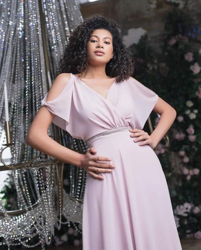 Вечернее платье. Подойдет на выпускной или свадьбы. Рост 160см. Ткань : Креп шифон, трикотажная подкладка, фурнитура на поясе - стразы Размер - S/М На молнии Завʼязки на поясі Цвет-нежно-розовый