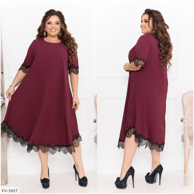 соПлатье FV-5851 Код 3517 Розмiри: 48-50, 52-54, 56-58, 60-62, 64-66 Ткань: софт. Цвета: Мокко Черный Зеленый Красный Марсала Ярко синий Длина платья: 125, 126, 127, 128, 129 см. Длина рукава: 40, 41, 42, 43, 43 см. Обхват рукава: 38, 39, 40, 41, 42 см. Замеры готового изделия: 48-50 ог 104 от 120 об 140 52-54 ог 112 от 128 об 148 56-58 ог 120 от 136 об 156 60-62 ог 128 от 144 об 164 64-66 ог 136 от 152 об 172 Невероятно стильное платье в вечернем стиле, длиной миди, а-образного силуэта. Вырез горловины круглый, по спинке застёгивается на потайную молнию. Рукав длиной чуть ниже локтя. Платье по рукавам и низу декорировано чёрным кружевом.