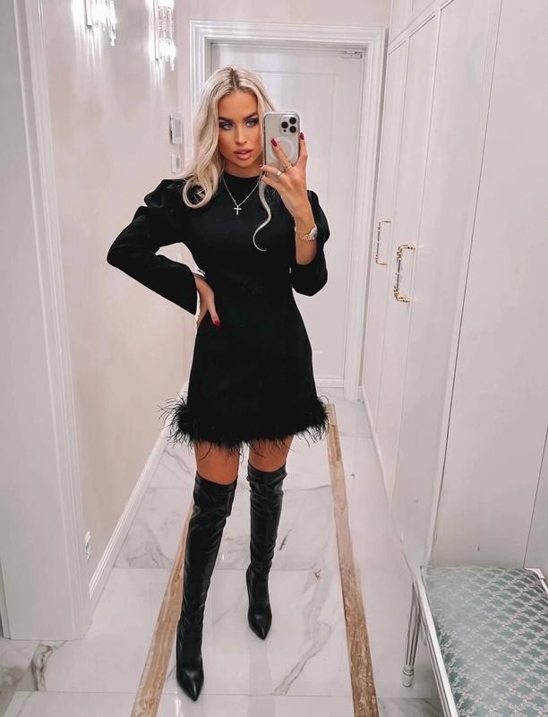 мо🩷НОВИНОЧКА В НАЛИЧИИ🩷 Платье 💥 мод.135 ткань - замш на дайвинге+ Лебединые перья- огненок хорошее утенство 🔥 размеры: 42-44, 46-48 цвета: черный😍