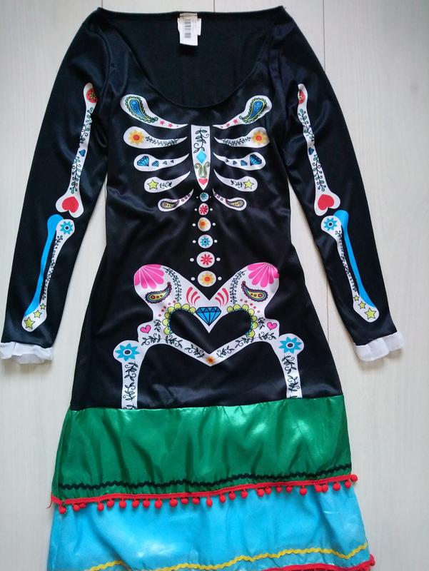 Длинное платье скелет на хеллоуин halloween