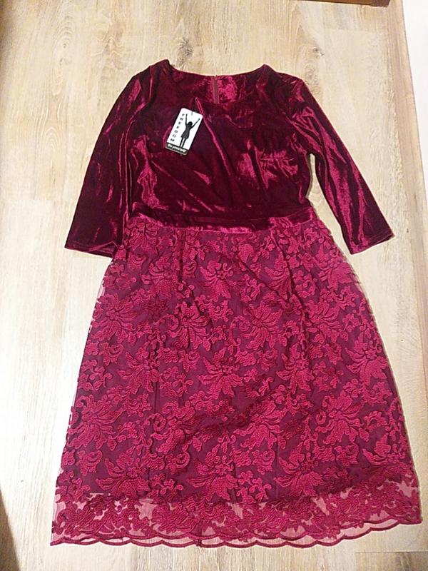 Бархатное платье в бордовом цвете, размер L- XL