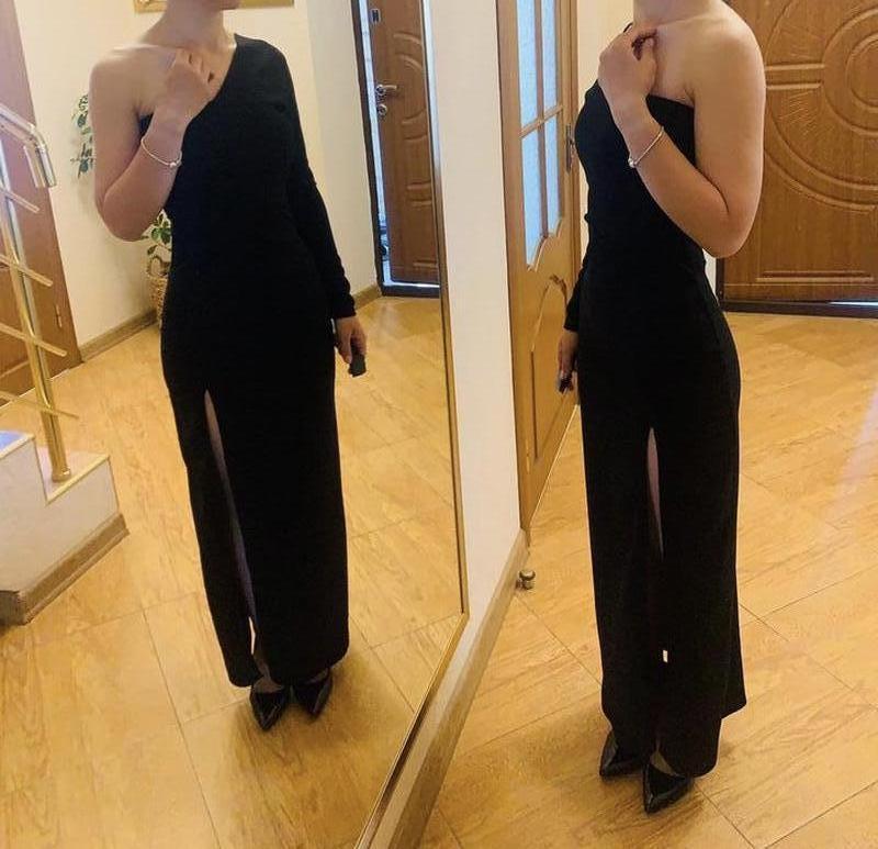 1. Сукня Розмір: хс Колір: чорний Матеріал: Креп-дайвінг Довжина: 138см (+ - 2см) Додатково: 75-60-84 Шили на замовлення . Одягала один раз . Фото реальні .