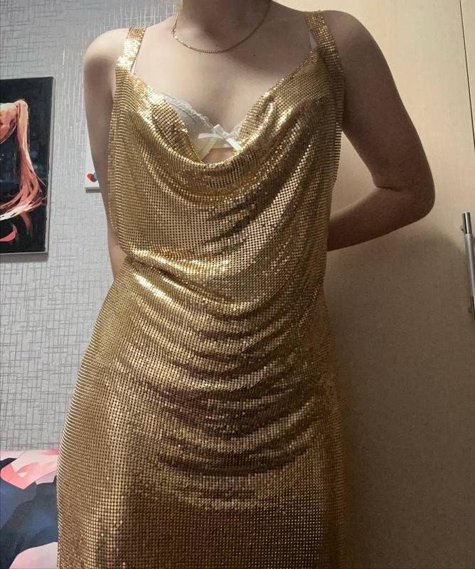 вечернее золотистое платье очень красиво подходит как на выступления или праздничных вечеров