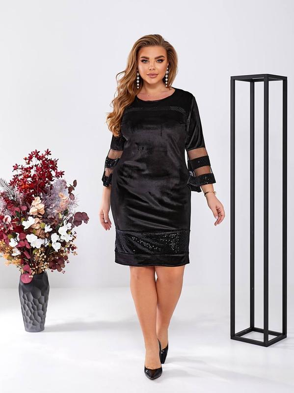 Сукня ткань: основа бархат, вставка пайетка на бархате, евро сетка цвет: черный - вставк...