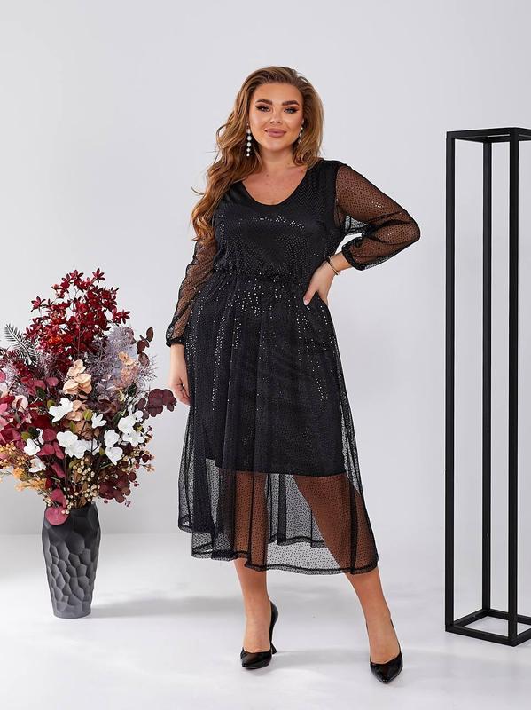 Сукня Ткань: евро сетка + трикотаж Цвет: черный и золото Размер: 50-52; 54-56; 58-60 📩 0810