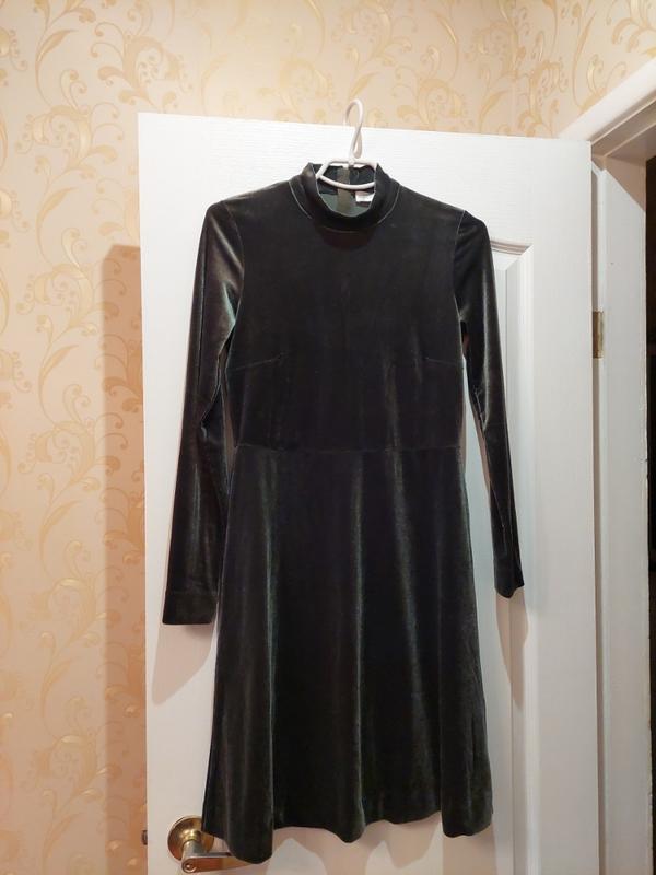 Невероятное платье в цвете будущего года - темно зеленая олива, бархатной ткани с ярким переливом.Оделась 1 раз в праздник. Все размеры на фото