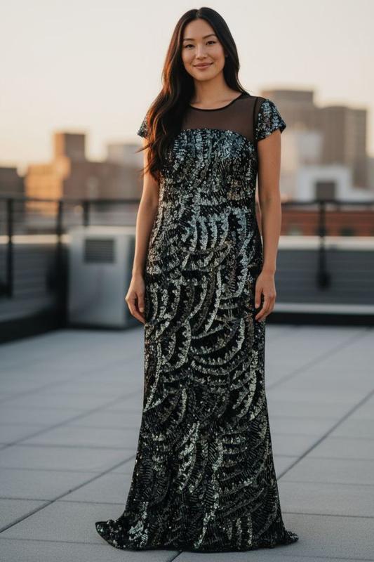 Шикарное вечернее платье в пол в паетку Calvin Klein Оригинал! р. XS/S На подкладке эластичной, на спине скрытая молния. В отличном состоянии! Без нюансов! Замеры : длина от плеча 150 см ПОГ 39 см (тянется до 45 см) ПОТ 37 см (тянется до 40 см) ПОБ 47 см (тянется до 53 см)