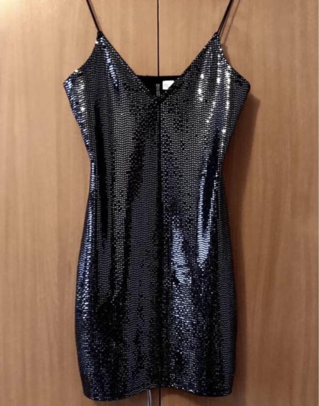 Нова чудова вечірня сукня з серебристим переливом H&M. Розмір з бірки S;165/88 A. Фото на моделі з розміром М. Доажина 82 см. ПОГ 37 см (тягнеться). Поліестер/еластан/металізіроване волокно.