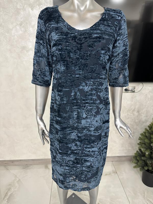 Красивое платье с велюровым напылением в отличном состоянии. Размер не указан, подойдет на Л. Длина 95см, пог 50см, пот 42см, поб 54см, рукав 38см. Застегивается сзади на молнии, внутри есть подкладка.