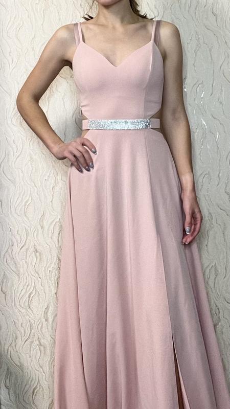 Очень красивое и качественное платье для выпускного или фотосессии. Нежно-розовый цвет, очень хрупкая. Есть разрез на одну ногу.
