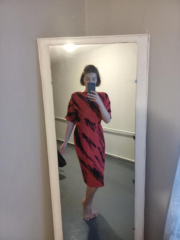 талия 34 см, но там резиночка цвет не яркий, красивый оттенок винного, больше похожий как на фото на девушке рукав спущенный, от шва до шва 55 см длина 105 см сзади маленький разрез идеальное состояние, одевалась два раза все дополнительные фото и замеры надув, пишите:) также напишуте настройки девушки, на которую одето, чтобы вы знали как будет смотреться на вас