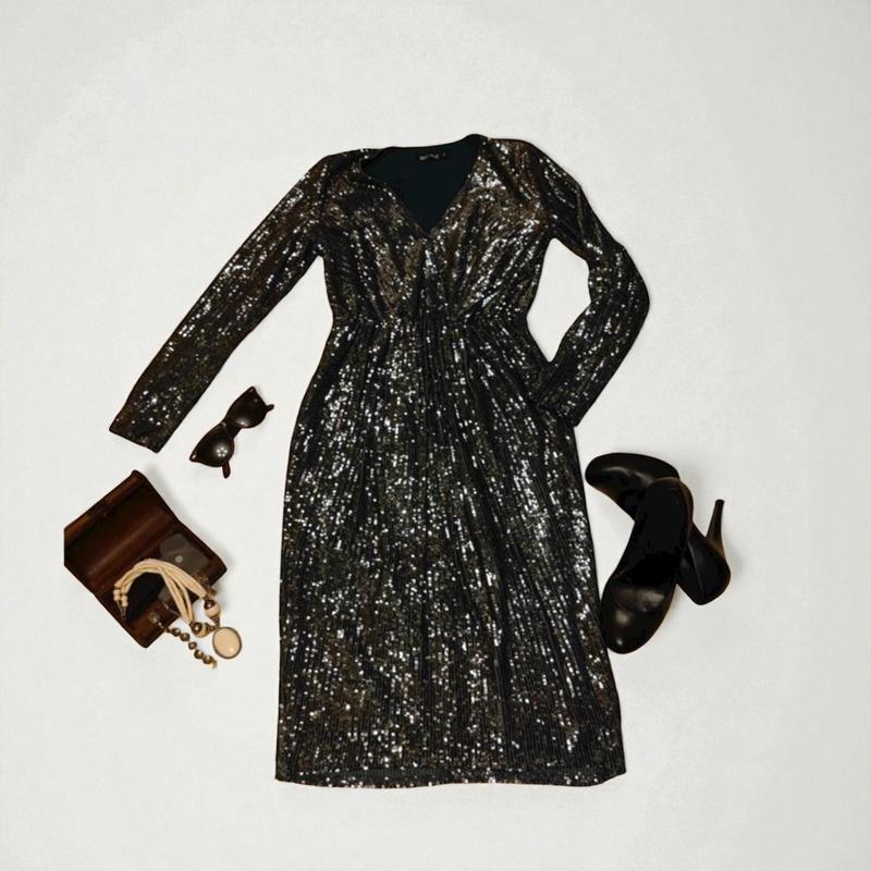 Бренд: Musthave (Україна) Розмір: 36 S/M Колір: сріблясте з зеленою підкладкою, відсвічує трошки зеленим Довжина: міді, по коліна на зріст 160-165 см. Стан: відмінний