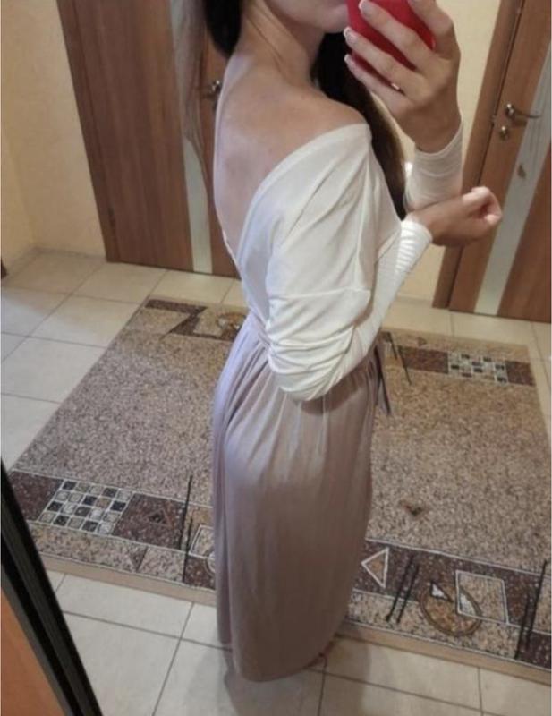 Идеальное нежное платье приобретается на выпускной ткани дайвинг очень красиво тянется есть на талии резинка сверху завязывается пояском состояние новой одевалась один раз