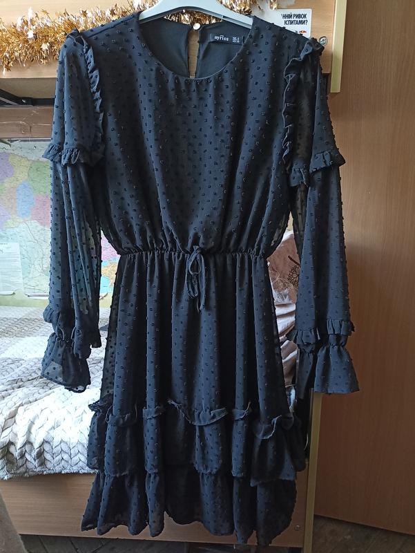 размер: s/36 материал: 100% полиэстер производитель: Турция длина юбки 55см (на рост 168 см выходит немножко выше колена) рукава полупрозрачные, юбка и верх с подкладкой, на талии резинка тянется Улегало 1 раз, состояние отлично