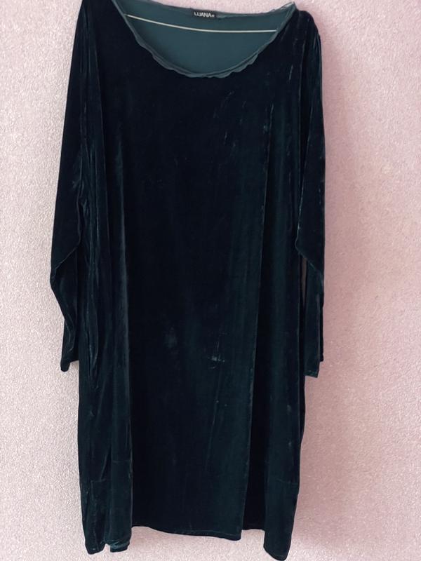 Оксамит на шовку Без підкладки Є кишені по боках Вільна сукня Пог 64 см Пгс 73 см Довжина від плеча 100 см Склад: віскоза шовк. Оксамит шовковий. Він дуже ніжний.