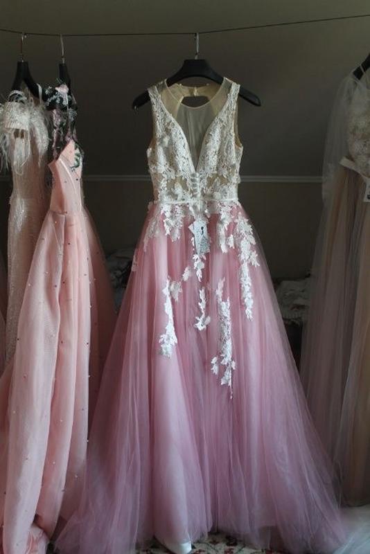 Гарна вечірня сукня ніжно рожевого кольору, з довгим шлейфом . Підійде як на випускний вечір , так і на не типове весілля . Стан : нова !