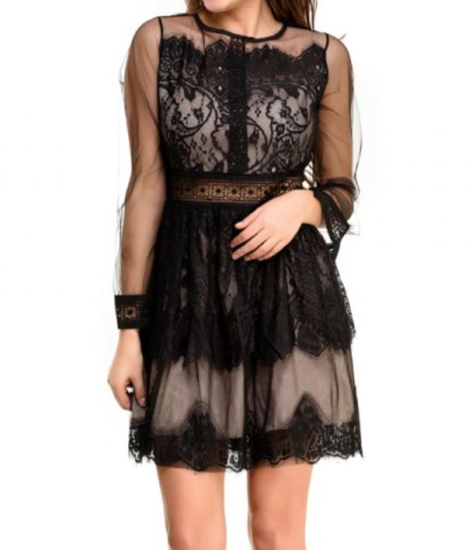 Невероятно женственное платье, с акцентом на талии за счёт кружевной вставки. Размер М Ткань: фатин+круживо