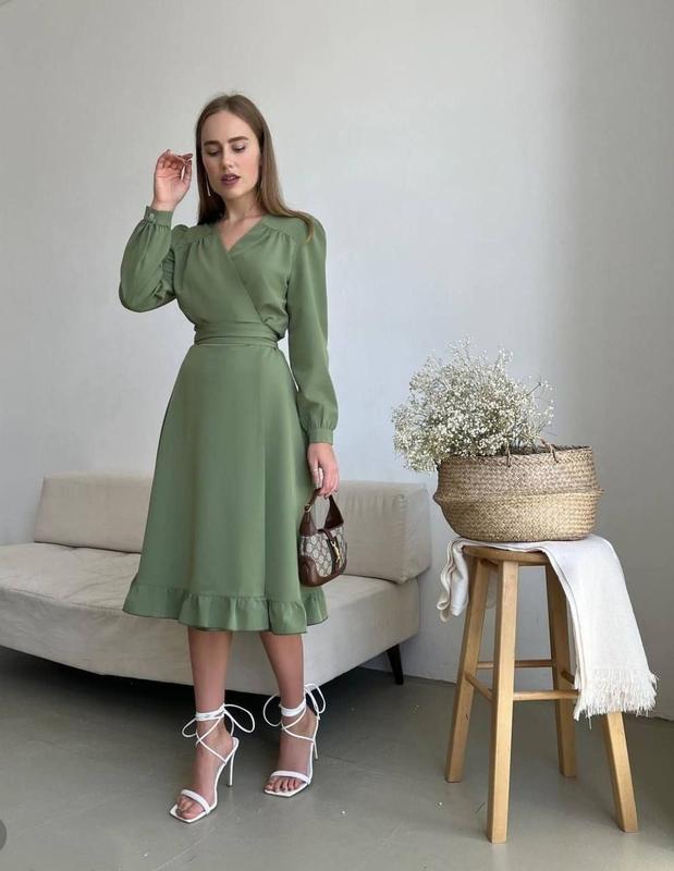 Сукня 📌Мод 387 📌Размер 42-46 📌Тканина костюмка Платье идет на запах 📌Цвета:голубой молочный,фисташка, розовый Длина 110 см Пог по спинке 44 см Длина рукава 63 см