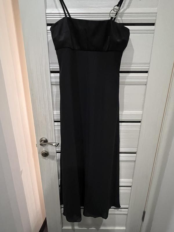 Красивое платье- сарафан, лиф- атлас, низ-вискоза, сверху прикрыт шифоном с разрезами. На брительке-пил с камнями.