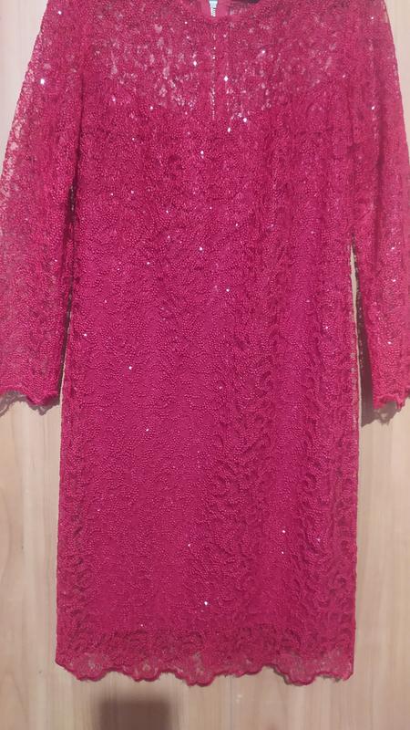 очень красивое платье прямого силуэта,цвет очень насыщенный фото не отображает реальной красоты, платье имеет подкладку не просавливает, по уду молния через всю длину платья, можно приталить с помощью ремешка. Ткань очень дорога в имеет блестки в тон. размер 42-46
