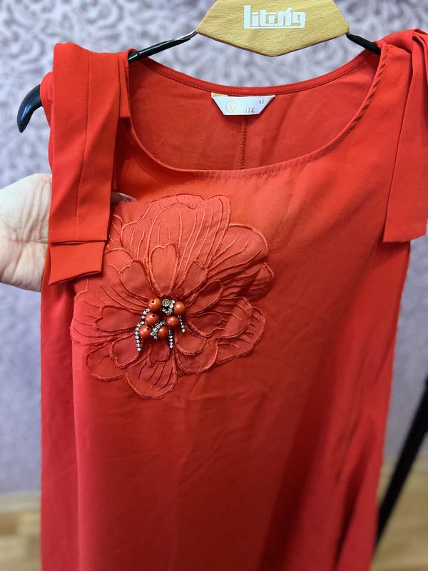 Платье нарядное, одетое один раз. Очень качественная ткань, купленная в дорогом магазине. На плечах бантики пришиты, свободна по крою, сзади чуточку удлинена, есть карманы Груди 115 Длина 90 Есть фото на мне