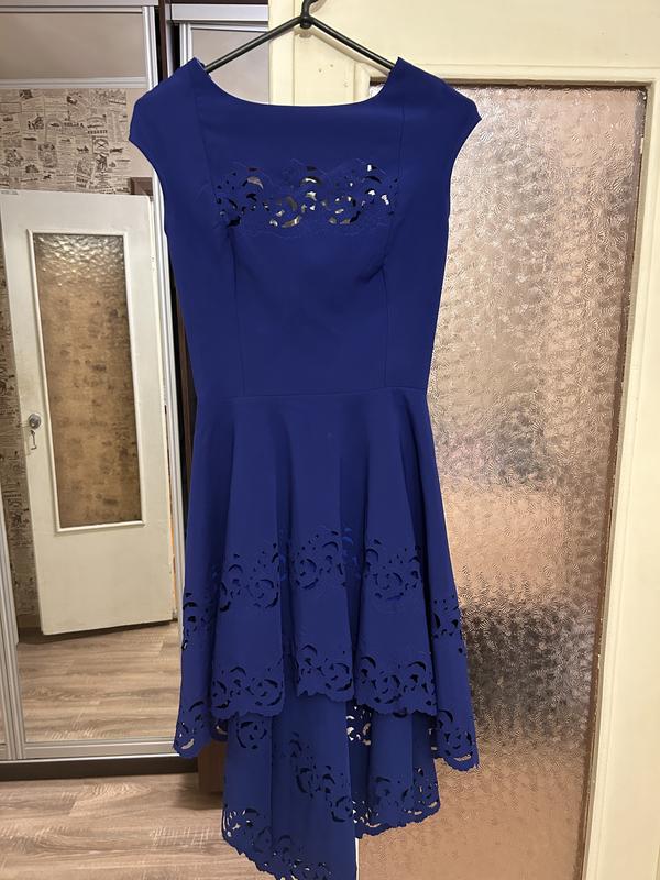 Сукня 36 розмір, в неймовірно красивому кольорі, позаду подовжена. Не одягнула ні разу, не підійшла по розміру