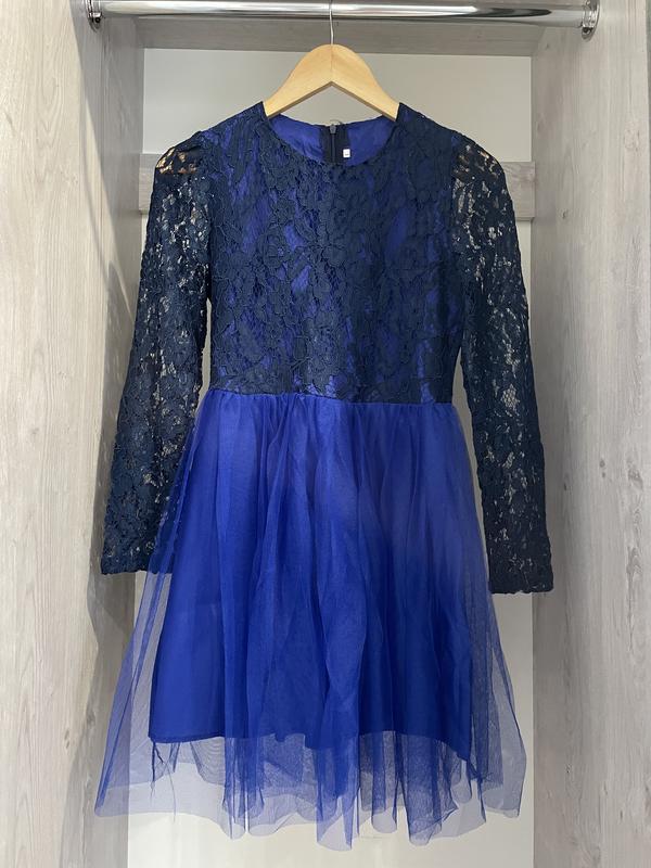 Множество лет прошло с появления первого фатинового платья, а она все равно в моде. Разнообразие моделей, выполненных из этого материала, просто поражает! Короткие, длинные, со вставками. Разве может такое разнообразие не привлечь внимание женского пола? Подбирая себе подобное платье можно с радостью обнаружить, что их сила-силена, и есть из чего выбрать каждой модницы. Мы представили Вам платье в ярком синем цвете с гипюровым лифом и фатиновым подъюбником - очень стильное и смелое сочетание! Прозрачные рукава соблазнительно демонстрируют руки, а длина платья отлично подчеркнет Ваши стройные ножки.