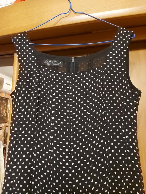 платье официальное, строгое, пог 48 ,пот 40, длина от плеча до низа 130, длина змейки потаенной сзади посередине 45, с подкладной шифон, цвет чистый черный и чисто белый горох, юбка гофре от талии фото 8