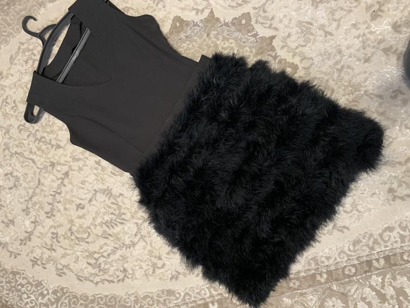 Платье нарядное с страусинным пиром на юбке, которая отстегивается для стирки верней части платья. Длина 83 см, пог 44см, пот 35 см, пос46 см. Костюм на тканина, не тягнеться.