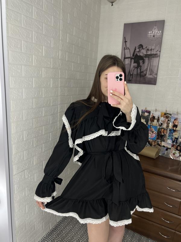 Платье с кружевом Тканина:коттон+кружева Размеры:42-46,48-52 Цвет:черный Невероятное платье с кружевом и пояском минималистичная и водно-нарядная❤️