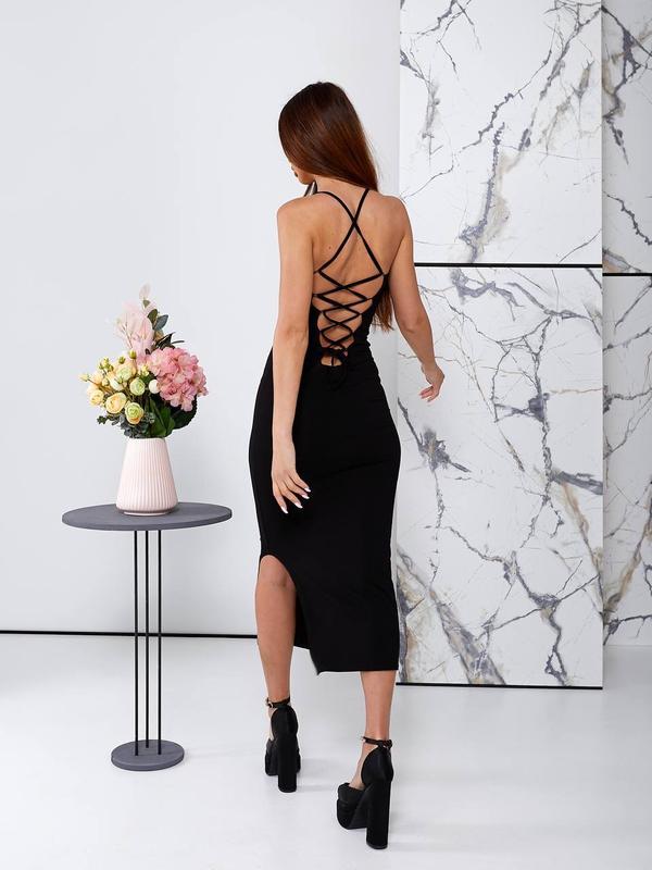 📝Арт: 1558- 114 💸Ціна: 700 грн Сукня 📸Фото реал ☑️Тканина: Трикотажна Віскоза щільна( Туреччина) ☑️Кольори: чорний ☑️Розміри: 42-44; 46-48 Облягаюча сукня midi акцент шнурівка по спинці виготовлено з м'якого віскозного трикотажу