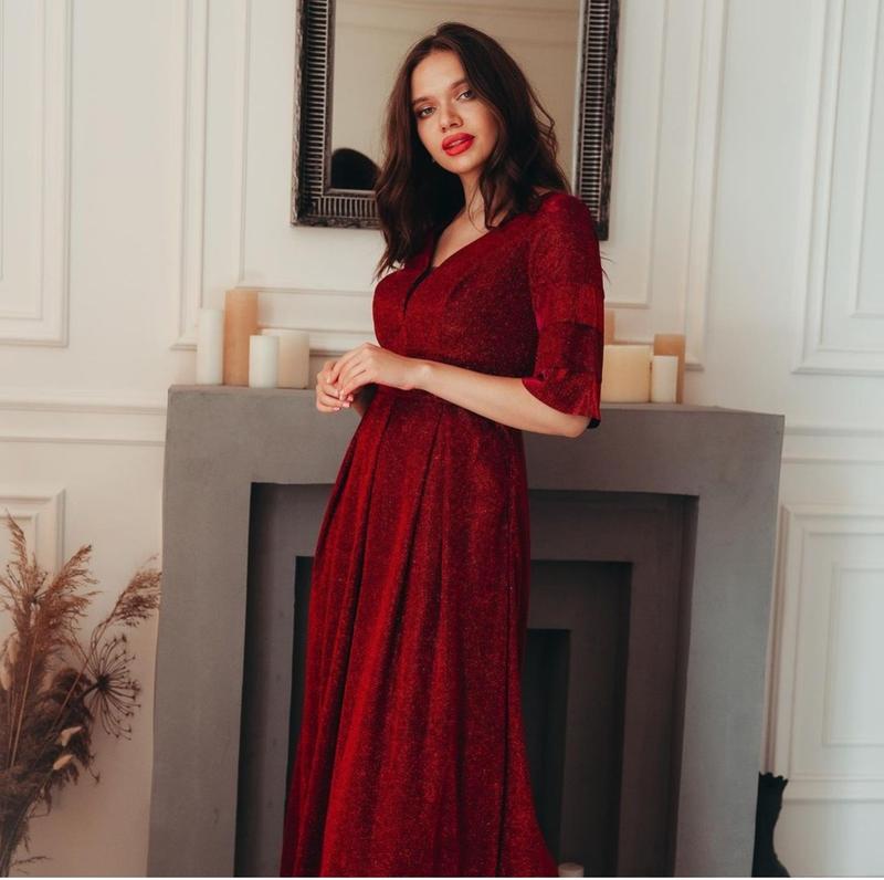 Изысканное вечернее платье в пол❤️ 💎Ткань: люрекс градиент, который переливается от красного до винного цвета 💎Отрезная талия идеально подчеркнет фигуру, а свободный низ поможет вытащить силуэт 💎красивый рукав по локоть Размеры: 48, 50