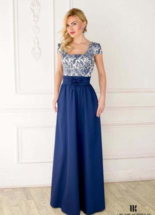Під замовлення за вашими мірками. Верх сукні з бавовняного еластичного жаккарда з легким атласним відливом. Склад : 50% віскози 45% бавовна 5% еластан Спідниця доступна з тканини як на останньому фото , костюмний сатин стрейч з дуже красивим відливом.За бажанням можна підібрати матову. Відмінно підійде для будь-якого сезону включаючи річний. Пояс знімний -кушак По спинці потайна блискавка. В бокових швах кишені. Розкішне і елегантне плаття .Підійде на будь-яке торжество. Додаткові характеристики: Фасон: Рік Фасон: Сукня - трапеція Тип тканини: Віскоза Тип тканини: Жаккард Колір: Синій Візерунки і принти: Без візерунків і принтів Візерунки і принти: Квітковий і рослинний принт Довжина: Довге / макси Стиль: Класичний Товар виготовляється на замовлення