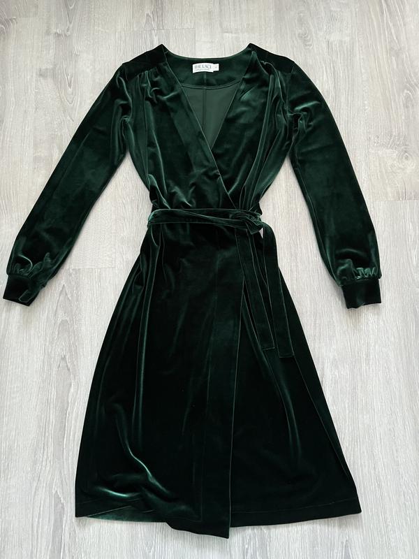 Шикарна оксамитова сукня на запах. Я завязки с внутренней стороны платья. Длинный пасок можно завязать как спереди, так и сзади. Очень качественная тяжелая ткань. Платье одевалось не более 3-х раз на торжественные события. Длина-110см