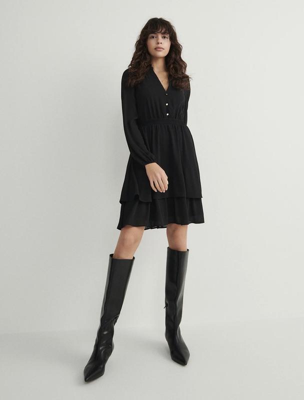 Сукня чорна з оброками . Талія на резинці. Підходить на XS - S. Середня довжена. Нова.