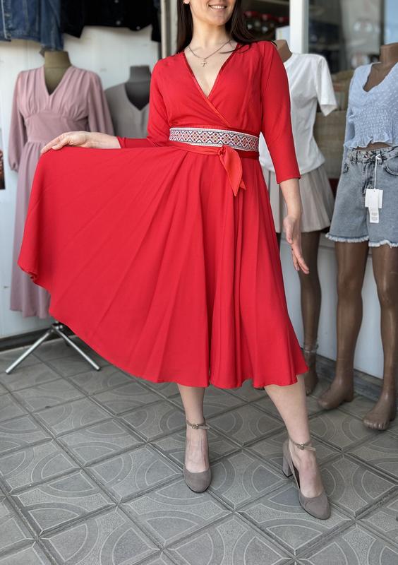 Розмір м, Півобхват талії 38, довжина юбки 70. Рукав реглан- тому верх підійде на будь який об’єм грудей.Юбка подвійна- нижня юбка атласна, пояс має однотонну атласну сторону. Ціна 950 грн