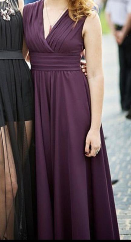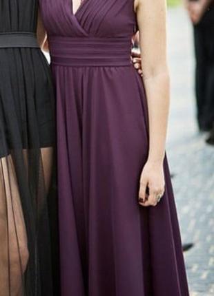 Идеальное состояние, одета один раз Шилась по заказу, ручная работа Цвет баклажан Верх шифон Подкладка ткани масло (атлас) На рост до 165 под каблук будет полностью к полу Талия 36 Грудь43 Плечи 40 Длина 145