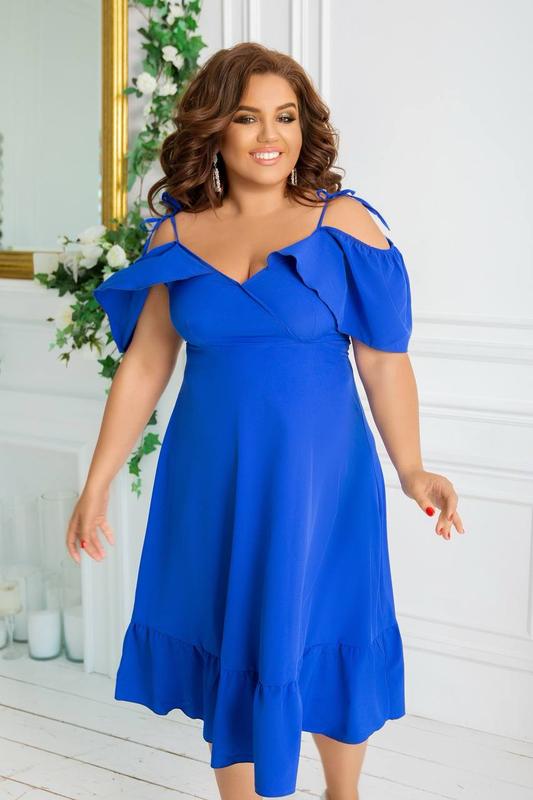 мод№59А90 Размеры: 48-50, 52-54,56-58,60-62. Ткань:супер софт однотон. Цвет:электрик. Длина платья:115см.