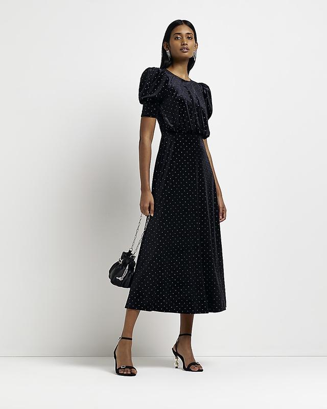 бархатное платье миди с отделкой rиver island Uk 12
